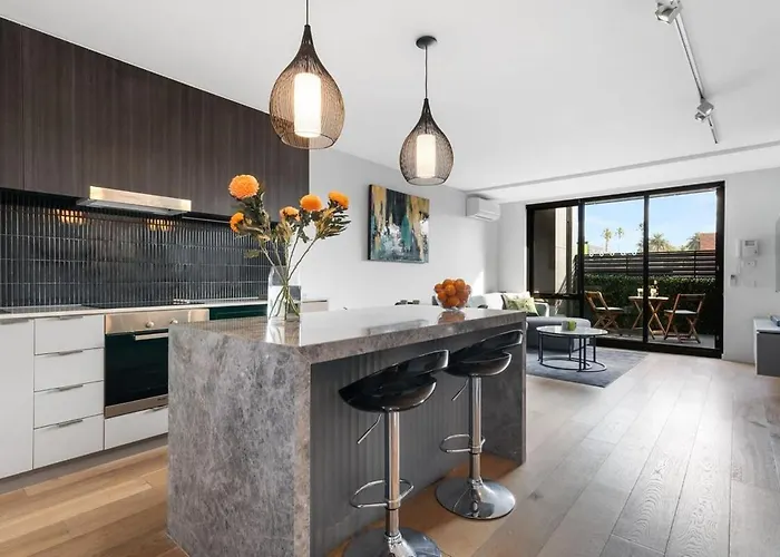 Stylish Retreat With St Kilda Action At Your Door 墨尔本地处圣基尔达群岛区,距离圣基尔达儿童游乐园有1.4公里。该住宿场所享有庭院的景致。